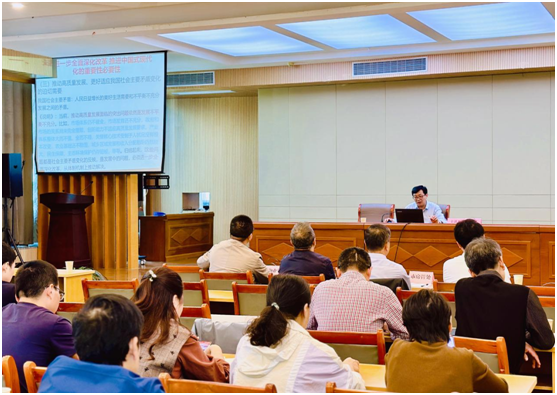 汪洋教授以《推進(jìn)中國(guó)式現(xiàn)代化的行動(dòng)綱領(lǐng)——深入學(xué)習(xí)貫徹黨的二十屆三中全會(huì)精神》為題,緊緊圍繞習(xí)近平總書(shū)記在黨的二十屆三中全會(huì)上的重要講話和全會(huì)《決定》,從進(jìn)一步全面深化改革推進(jìn)中國(guó)式現(xiàn)代化的重要性必要性、總體要求、系統(tǒng)部署、根本保證四個(gè)方面,對(duì)黨的二十屆三中全會(huì)精神做了系統(tǒng)全面解讀和深入闡釋,為與會(huì)人員進(jìn)一步加深對(duì)全會(huì)精神的理解把握,切實(shí)用全會(huì)精神統(tǒng)一思想、統(tǒng)一意志、統(tǒng)一行動(dòng)提供了有力指導(dǎo)。